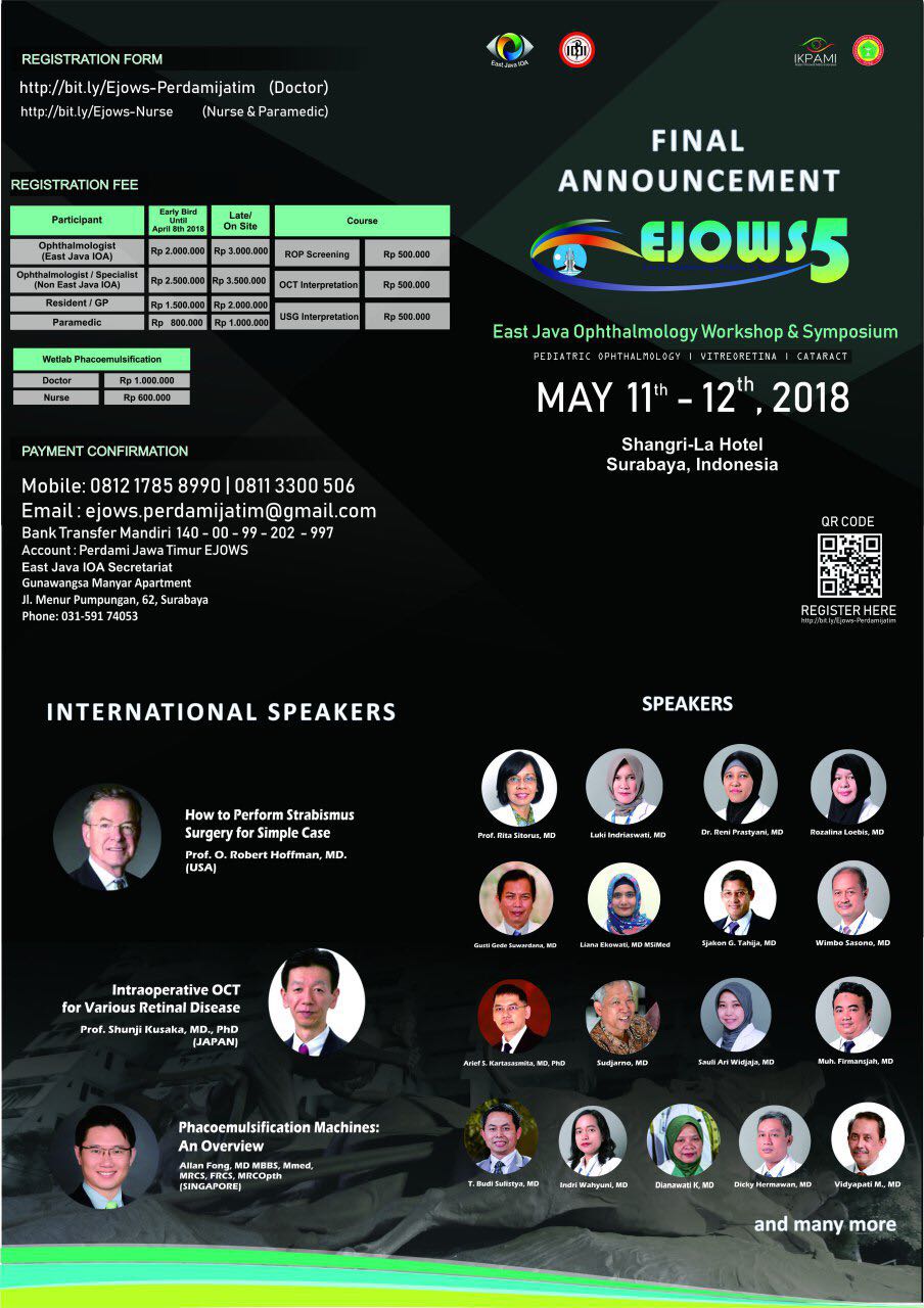 East Java Ophthalmology Workshop & Symposium (EJOWS) 5 which will be held on Friday - Saturday 11th - 12th May 2018,